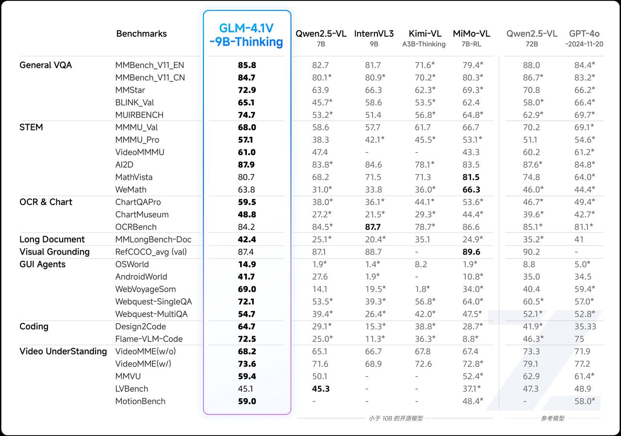 智谱轻量版GLM-4.1V-9B-Thinking模型跑分成绩出众